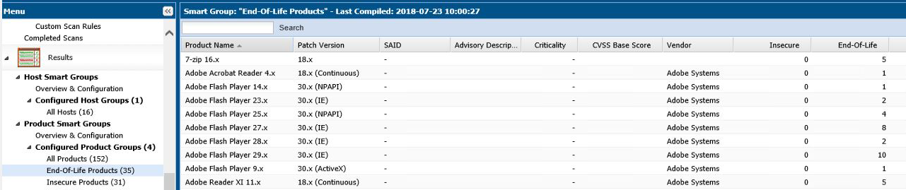 End-of-Life (EOL) products will not a include Secunia Advisory IDs (SAID), as Flexera does not assign vulnerabilities to EOL products.