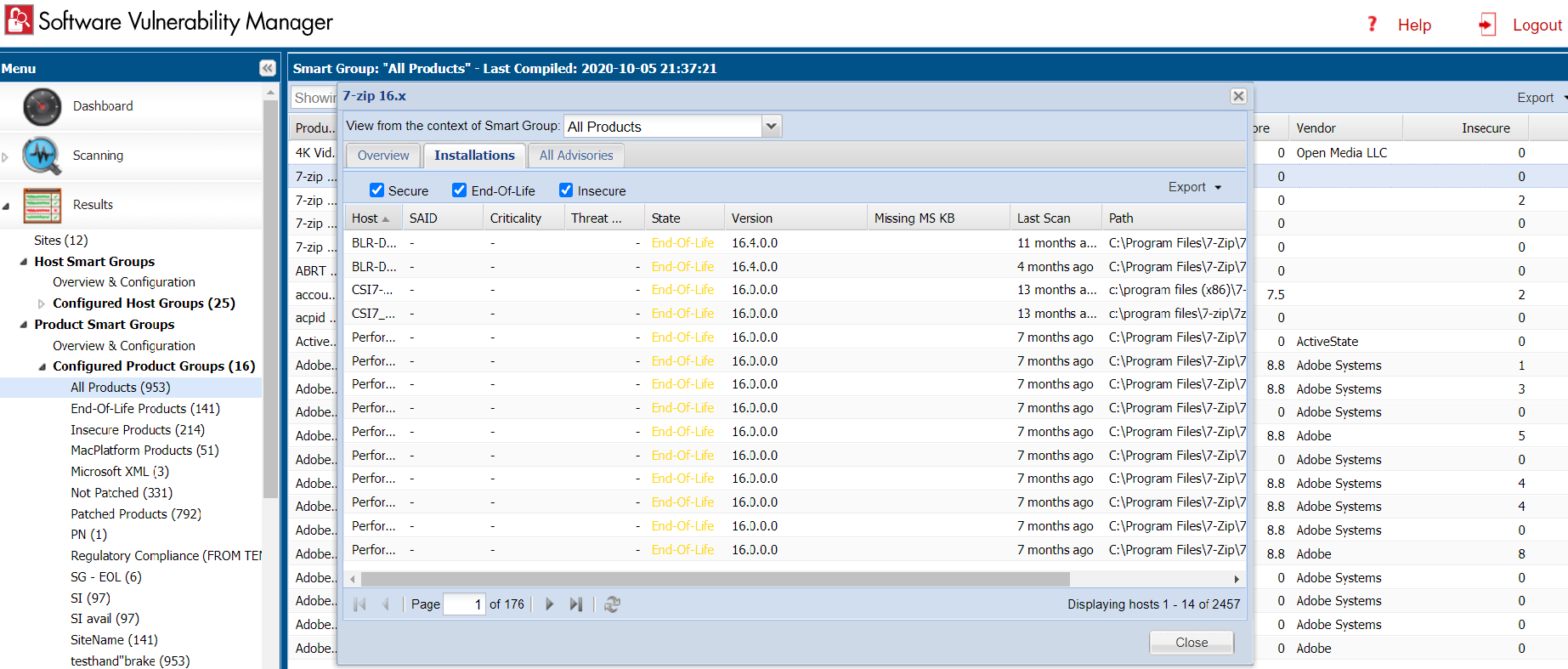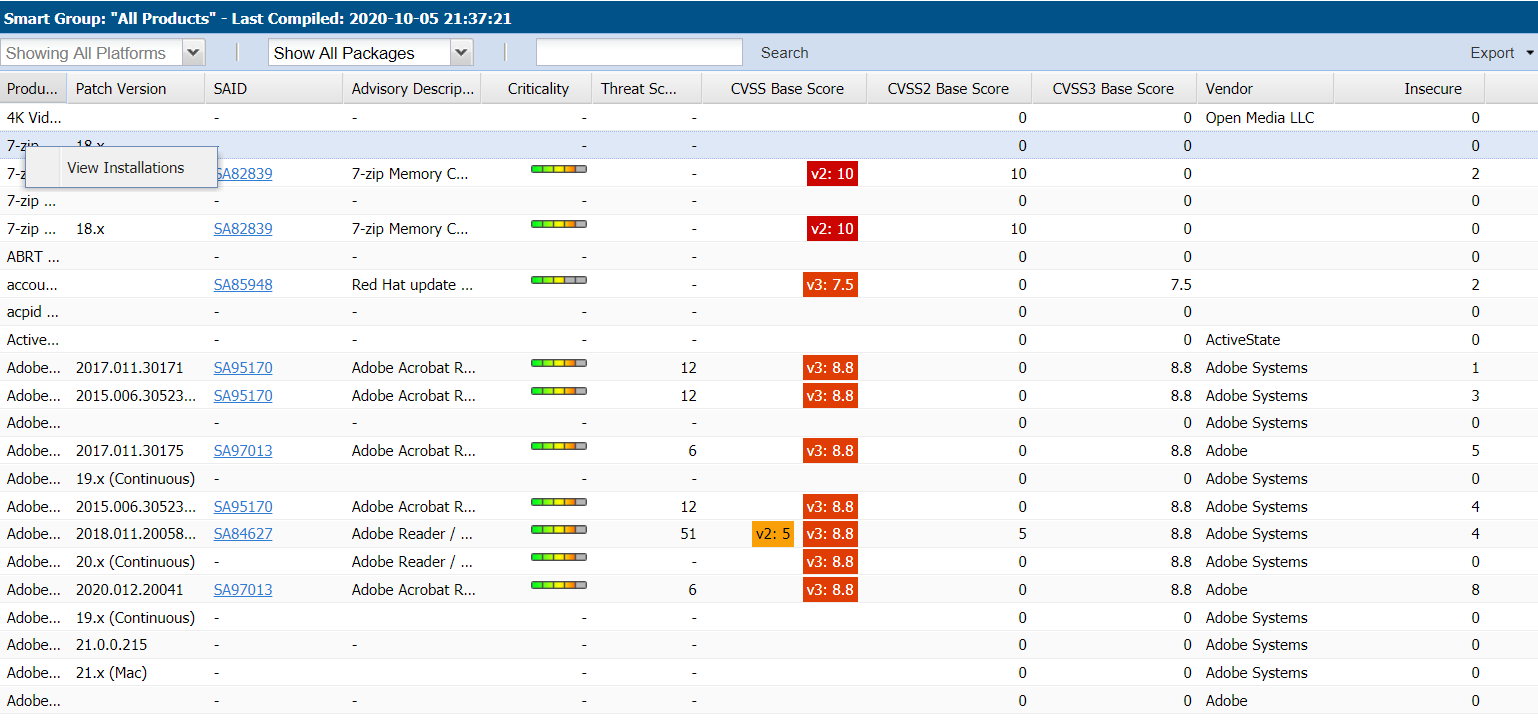 Use this page to view the information for each Product Smart Group you created. Right-click an item in the grid and select View Installations to display the installation details.