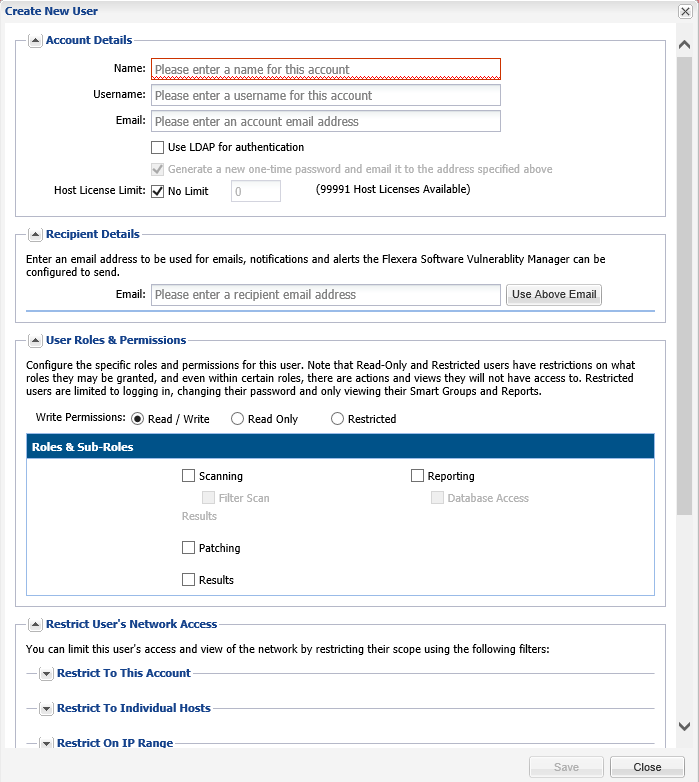 Important:To create a user using LDAP authentication, the Software Vulnerability Manager Username must be the same as the LDAP Username.