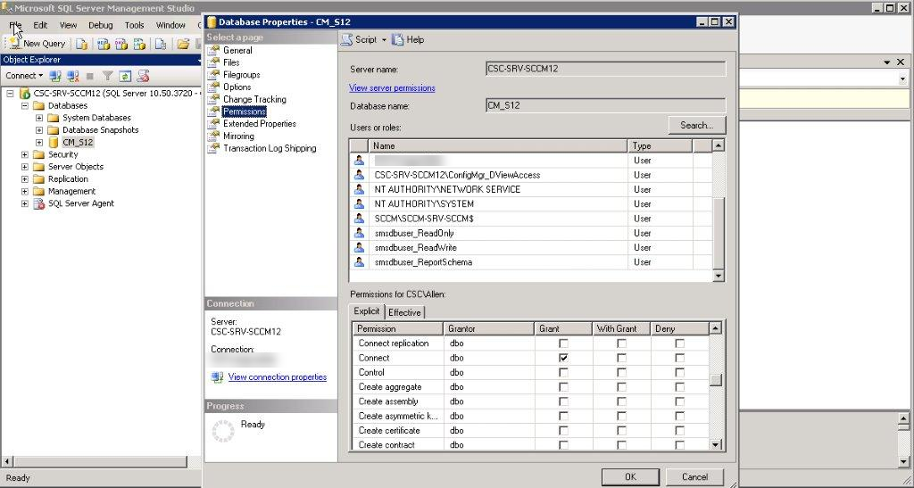 To assign Connect and Select permissions to the user (or service account) that will be used to run the Daemon service, perform the following steps.