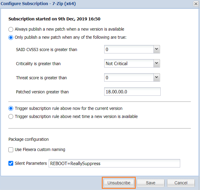 If the package is already subscribed as explained in Subscribe to Package, you can right click and select Edit Subscription to edit the configured preferences. To unsubscribe the subscription, click Unsubscribe button.