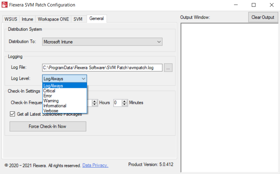 You can edit the folder path to save the action logs of this Tool. By default, the folder path will be: C:\ProgramData\Flexera Software\SVM Patch\svmpatch.log. |
