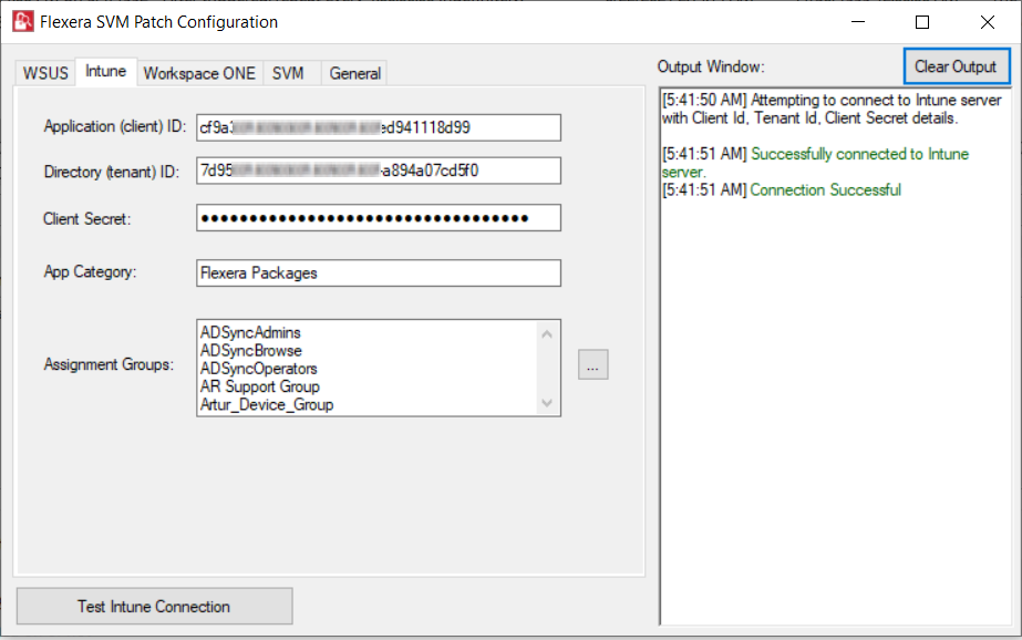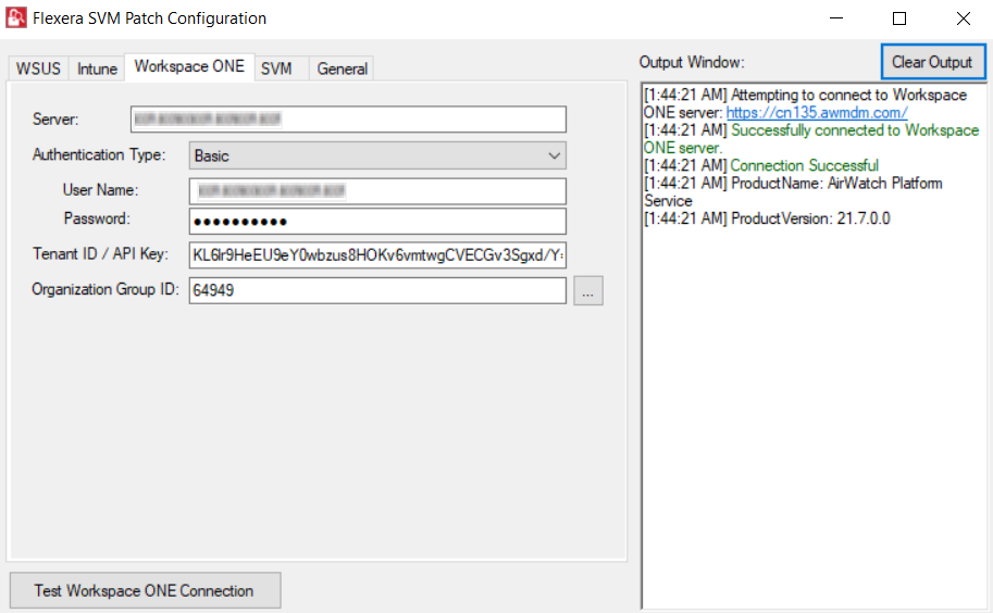 Click Test Workspace ONE Connection button, on successful connection you will receive a successful message in the Output Window. |