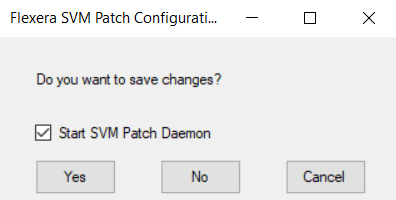 To run the services, click close button. You will be prompted to enable Start SVM Patch Daemon in the closing window. Click Yes to restart the Patch Daemon for the change to take effect. |