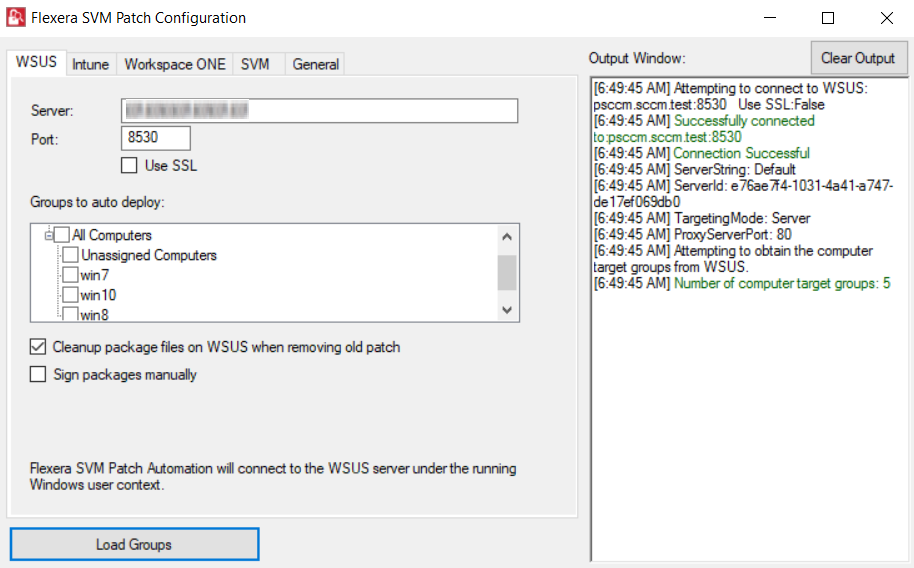 In WSUS Connection tab, enter the WSUS server details and the port number, click Load Groups. |