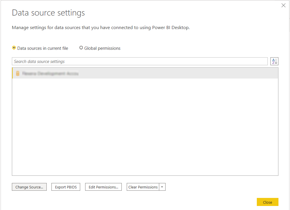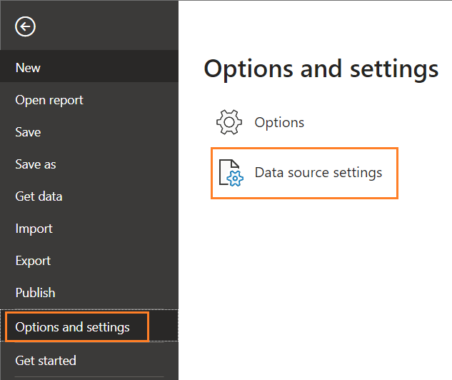 Click on the File menu, select Options and settings, and select Data source settings. |
