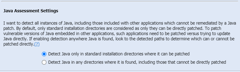 The Java Assessment Settings allows to you specify if you want to detect Java instances in the standard installation directories alone or in all the directories.