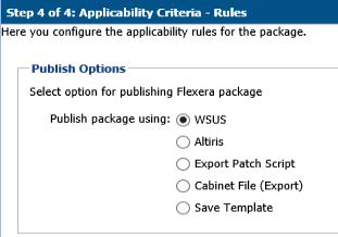 | 4. | In Step 4 of 4 of the SPS wizard (Applicability Criteria - Rules), select WSUS for the publishing option and click Publish. |