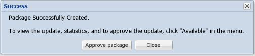 | 5. | The Attempting to Publish Package - Please Wait status appears. After the WSUS package is successfully created, a Success pop-up window appears. Click Approve package. |