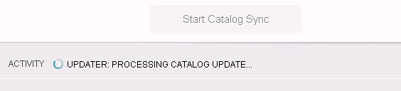 During synchronization, a progress bar is displayed below the Start Catalog Sync button see the following image. For more details about the synchronization status, open the Activity Monitor screen.