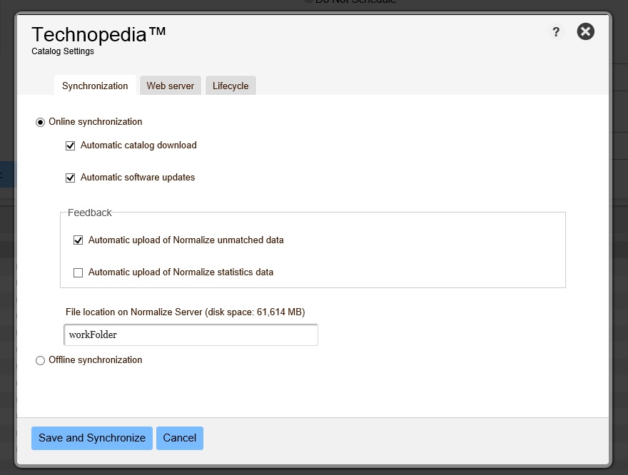 If the Data Platform Server is connected to the Internet, you can enable online, automatic synchronization of the Technopedia Catalog.