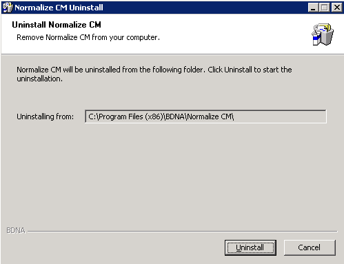 | 1. | Choose Start > Programs > BDNA > Data Platform> BDNA Data Platform > Uninstall. |