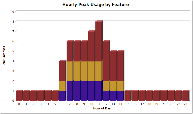 Part of the Tier Usage report, showing Hourly Peak Usage by Feature
