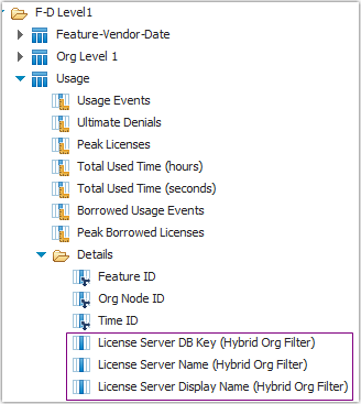 ***To display usage for all license servers, the detail filter for your query must set the License Server DB Key (Hybrid Org Filter) data item to null.