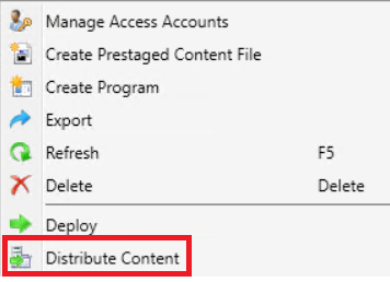 9. | Distribute the package to all Distribution Points or groups using the Distribute Content feature. |
