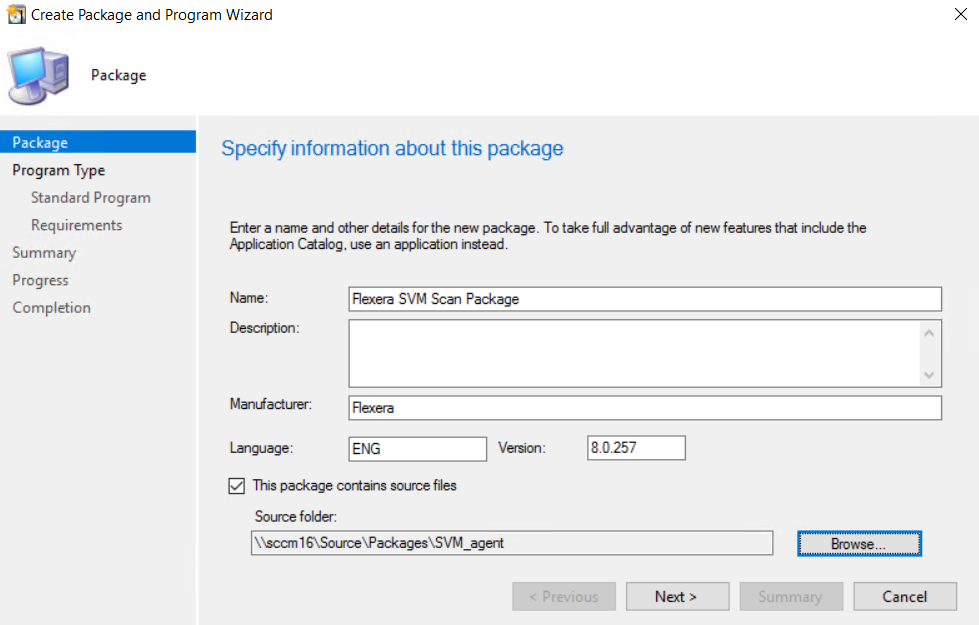 To run the Vulnerable Software Discovery Tool inside an SCCM package, perform the following steps.