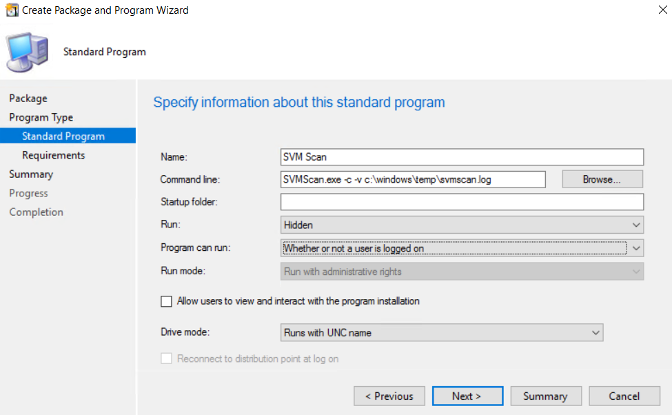 To run the Vulnerable Software Discovery Tool inside an SCCM package: