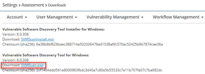 1. | Open the Software Vulnerability Research console. From Settings > Assessment > Downloads, download the latest SVRScan.exe file and place it into a deployment share. |